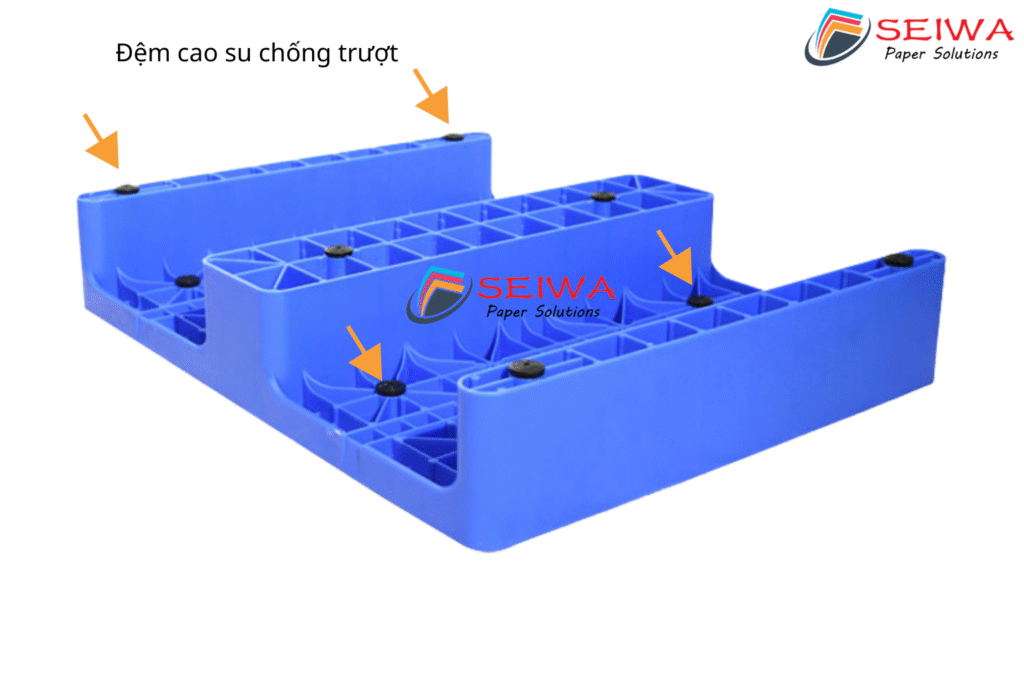 • Bề mặt phẳng hoàn toàn giúp giấy in, đầu bản in hoặc vật liệu đặt lên pallet không bị lệch, lún hay nghiêng trong quá trình vận chuyển và chạy máy.